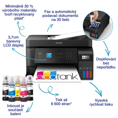 Vychutnejte si bezdrátový a mobilní tisk v profesionální kvalitě s touto mimořádně úspornou multifunkční inkoustovou tiskárnou s faxem, která je ideální pro aktivní domácnosti a malé kanceláře.