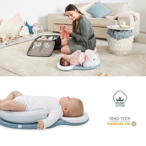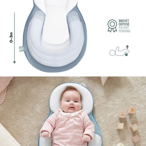 Ergonomický polštář zaručující perfektní polohu pro novorozence: ideální poloha zádíček, hlavičky a zvednutých nožiček.