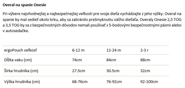 Overaly 2,5 TOG Onesie udrží děti během spánku v teple při pokojových teplotách 17–23 °C. Hodnota TOG znamená, že při používání tohoto výrobku nejsou potřeba další přikrývky v postýlce, což z něj činí bezpečnou možnost spánku. Rodiče se mohou řídit BEZPLATNÝM pokojovým teploměrem a příručkou What to Wear (Co si obléct), které jsou součástí výrobku, a vhodně pod ně navrstvit přikrývku, aby.