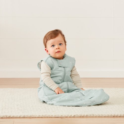 Vak na spaní Sheeting 2,5 TOG je ideální pro udržení tepla pro dítě během noci v místnostech o teplotě 17–23 °C. Hodnota 2,5 TOG znamená, že při používání tohoto výrobku nejsou zapotřebí další přikrývky v postýlce, což z něj činí možnost bezpečného spánku. Rodiče si mohou být jisti, že prodyšná organická přírodní vlákna pomáhají regulovat teplotu dítěte a zabraňují přehřátí. Rodiče se mohou řídit pokojovým teploměrem ZDARMA a příručkou What to Wear (Co si obléct), které jsou součástí výrobku, a vhodně pod ně navrstvovat vrstvy, aby jejich dítě zůstalo v teple.