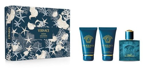 Láska, vášeň, síla a touha – to jsou esence pánské vůně Versace Eros. Inspirovaná dokonalostí mužského těla a bohatým odkazem antické mytologie a klasického sochařství, tato vůně ztělesňuje charakteristický styl značky Versace od jejího vzniku. Eros, bůh lásky se svým kouzelným lukem a šípy, které nikdy nemíjí cíl, má moc okouzlovat a ovlivňovat srdce. Vůně Eros je stvořená pro moderního muže, který je silný, vášnivý a sebevědomý. Její flakon upoutá okamžitě svým tyrkysovým odstínem – hlubokým a mužným, připomínajícím hladinu Středozemního moře, která se třpytí na slunci. Zároveň nese jemný odkaz antického umění a kultury, elegantně přenesený do moderního stylu. Součástí sady je: