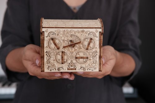 Darování poukázky, hotovosti v obálce, nebo jiného dárku pro Vás není dost osobní? Chcete předat dárek skutečně kreativním způsobem? Spojte překvapení se zkouškou důmyslu a trpělivosti. S tímto boxem v exkluzivním designu neuděláte chybu. Ať už jde o narozeniny, svatbu, oslavu plnoletosti, přijímání, biřmování, nebo jakýkoliv jiný dárek. Tento jedinečný box je ideální pro každou příležitost. Rozměry vnitřního prostoru jsou 5,7×9,3×6,2 cm. Běžný dárkový balicí papír se používá pouze jednou, tento box můžete používat opakovaně. Hlavní vlastnosti: kreativně zabalený dárekopakovaně použitlnévhodný pro každou příležitoststřední obtížnostvyrobeno v EU Dokumentace: návod k sestavení: