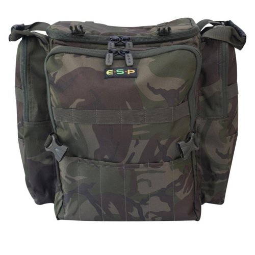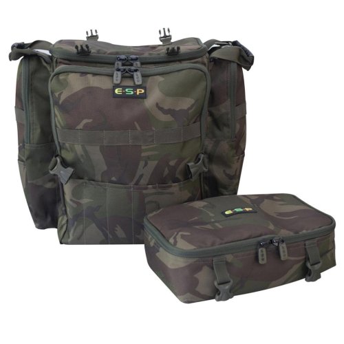 Objem 40 litrů Pohodlný design, který sedí vysoko na zádech Vyrobeno z odolné 600D camo tkaniny Odnímatelné pouzdro na náčiní s vnitřními přepážkami Tři vnější kapsy na zip Několik vnějších kapes pro vidličky Úchyty pro podložku Quickdraw Nastavitelné polstrované ramenní popruhy Hrudní popruh Zvedací rukojeti Zesílená základna