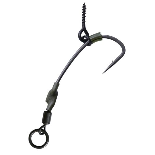 Hotové návazce Trig Hammer Ronnie Rigs Hotové návazce Trig Hammer Ronnie Rigs jsou osazeny háčky Trig Hammer. Jedná se o vylepšené Ronnie návazce, které obsahují vysoce účinné háčky Trig-Hammer. Tento extrémně ostrý háček s dlouhou stopkou se stal první volbou pro tisíce rybářů, kteří používají Ronnie rig. Subtilně zakřivený dřík vytváří agresivní úhel, což spolu s ostrým hrotem vede k výjimečnému držení háčku a impozantnímu poměru zaháknutí. Tyto návazce jsou dále vybaveny kovovým vrtáčkem pro uchycení nástrahy, díky kterému je připevnění pop-up nástrah rychlé, snadné a bezpečné. Zarážka Grip Stop je umístěna v optimální poloze v ohybu háčku a zabraňuje sklouznutí i při extrémních náhozech. Háček je připevněn k Ronnie Ring Swivel, který je opatřen 1,6mm smršťovací bužírkou.
