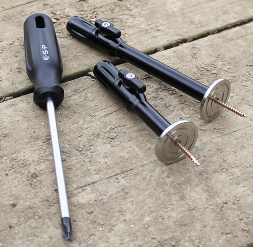 Stojany Stage jsou ideálním řešením pro stabilní upevnění hrazd a hlásičů při rybaření z dřevěných mol. Stojany ESP Stage se dodávají v párech o délce 4 a 6 palců, které lze prodloužit na 5 1/4 palce a 9 palců. Různé délky lze umístit dopředu nebo dozadu, aby bylo možné přizpůsobit se různým rybolovným situacím, jako je například nastavení „špičkami nahoru“ nebo „špičkami dolů“. Konstrukce je stejná jako u velmi úspěšných banksticků ESP, s vnějším povrchem z tvrdého eloxovaného hliníku a pevným vnitřkem z uhlíku s bezpečně uzamykatelným šroubem s křížovou hlavou. Místo hrotu však mají širokou nerezovou patku, která zajišťuje vynikající kontakt s povrchem a přilnavost. Tyto stojany, které se upevňují pomocí dodávaných vrutů do dřeva a šroubováku, vytvářejí pevné uchycení na dřevěných plošinách a molu.