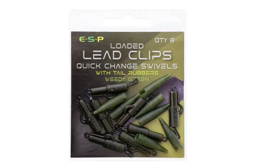 Loaded Lead Clips, jsou vybaveny integrovaným obratlíkem, který se připevňuje k hlavní šňůře nebo návazci. K dispozici jsou dva typy obratlíků – rychlovýměnný a uni-link ring, aby vyhovovaly různým preferencím. Rameno pro uchycení olova je dostatečně pevné i pro velká olova, ale v případě zachycení ryby nebo podle uvážení rybáře se olovo uvolní. Ochranné gumové koncovky zajišťují aerodynamické spojení, které se nezamotává, a jsou kompatibilní s trubičkami Tungsten Loaded. V každém balení je osm lead klipů a gumových koncovek, ve třech tlumených barvách (zelená, hnědá a šedá), které dokonale ladí s různými podklady.