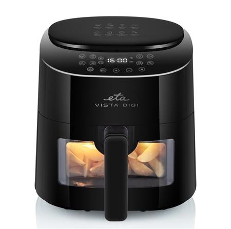 Připravte si oblíbená smažená i nesmažená jídla s ve zdravější verzi, s minimem přidaného tuku! Horkovzdušná fritéza ETA Vista smaží jídlo pomocí horkého vzduchu, který proudí rovnoměrně uvnitř fritézy. Výsledkem jsou pak rovnoměrně usmažené řízky, hranolky, krokety i zeleninový falafel.