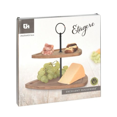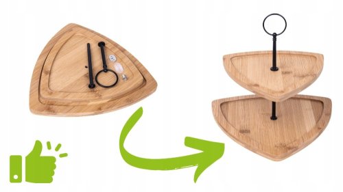 Dřevěný etažér umožňuje servírování a prezentaci sladkých i slaných pochoutek až na dvou patrech, což Vám ušetří místo na jídelním stole. Velmi často se používá etažér na cukroví, ale můžete na něm servírovat ovoce, jednohubky, předkrmy, sušenky, makronky i zákusky. Etažér je vyrobený z bambusového dřeva, které je odolné a zároveň ekologické. Díky bambusu je etažér lehký a snadno přenosný, takže ho můžete snadno přemístit z jednoho místa na druhé.