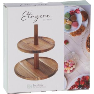 Elegantní a praktický dvouúrovňový stojan z odolného akáciového dřeva je ideální pro servírování dezertů, sýrů, ovoce nebo jednohubek. Díky přírodnímu materiálu vynikne na každém stole a dodá servírování útulný, sofistikovaný nádech.