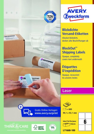 • Etikety na zásilky z extra silného materiálu. Jsou vyrobeny s technologií BlockOut™ - zcela neprůhlené - kompletně zakryjí starý text nebo etiketu