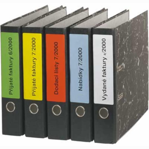 • Samolepicí etikety na pořadače