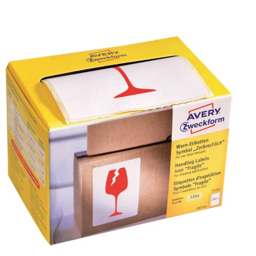 Etikety na zásilky s varovným symbolem "KŘEHKÉ" ve formátu 74 x 100 mm s mimořádnou přilnavostí a výbornou viditelností Tvar obdelníkový se zaoblenými rohy V praktickém kartonovém zásobníku pro jednoduchou …
