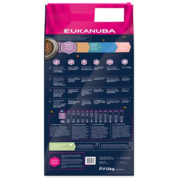 Jehněčí maso představuje velmi dobře stravitelnou výživu, vhodnou i pro citlivé psy. Tato strava od společnosti Eukanuba štěňatům poskytuje veškeré živiny, důležité vitamíny a minerály potřebné pro optimální růst. Obsahuje přísady vysoké kvality a velké množství živočišných proteinů. 100% kompletní a vyvážená výživa pro štěňata všech plemen upřednostňující krmivo s jehněčím masem pro snadné trávení a vynikající stav pokožky a srsti.