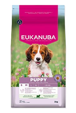 Kompletní, superprémiové krmivo pro štěňata malých a středně velkých plemen s bohatým obsahem jehněčího masa a rýže.