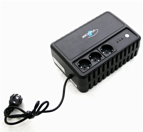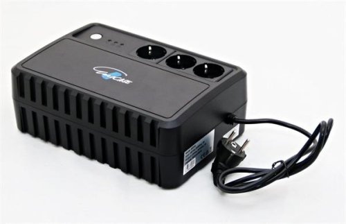 Záložní zdroj kompaktní velikosti, přizpůsobený i k zavěšení na stěnu. Na čelním panelu nalezneme vypínač ON/OFF a indikační LED.