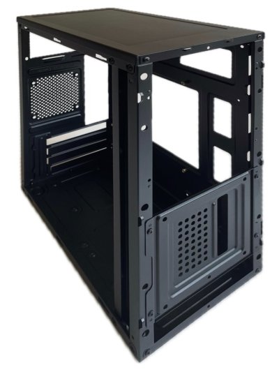 Počítačová skříň v provedení Micro tower nabízí tři 2,5" a dvě 3,5" pozice pro pevné a SSD disky. Na předním panelu jsou umístěny dva USB 3.0 porty, jeden USB-C port, sluchátkový výstup a vstup pro mikrofon. Potěší také možnost osazení až třemi ventilátory. Ve skříni je dostatek prostoru pro chladič CPU do výšky až 140 mm a grafickou kartu o délce až 200 mm. Skříň je dodávána bez zdroje.