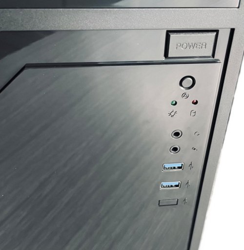 Konektory na předním panelu: 2× USB 3.0, 1× sluchátkový výstup, 1× vstup pro mikrofon