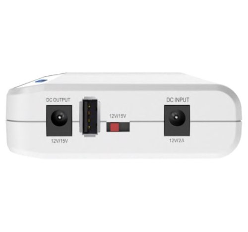 Záložní zdroj určený např. pro zálohování routerů, modemů, kamerových systémů a podobných zařízení napájených DC 12 V nebo DC 15 V. Samozřejmostí je LED indikace stavu nabití baterie, volby napětí a režimu UPS (zelená LED nabíjecí mód, červená LED bateriový mód). Výdrž baterií činí až 70 minut provozu.