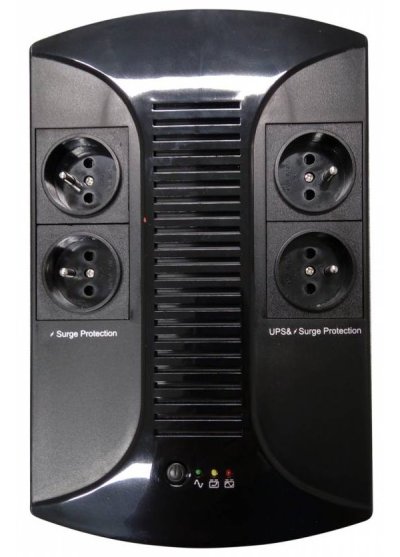Záložní zdroj je kompaktní velikosti, přizpůsobený i k zavěšení na stěnu. Na čelním panelu nalezneme tlačítko pro zapnutí a 3 indikační LED.