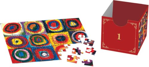 kalendář obsahuje 24 různých puzzle obrázků s vánočním motivem, každé puzzle má 50 dílků, obrázky mají čtvercový tvar a rozměr jednoho puzzle je 12,5 x 12,5 cm, kalendář obsahuje 24 okének a je znovu použitelný (pro příští rok si s jeho pomocí můžete vytvořit originální adventní kalendář naplněný drobnostmi nebo něčím sladkým), v každém okénku je vyobrazená předloha skládaného obrázku, na zadní straně obalu jsou vyobrazeny všechny předlohy.