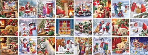 kalendář obsahuje 24 různých puzzle obrázků s vánočním motivem každé puzzle má 50 dílků obrázky mají čtvercový tvar a rozměr jednoho puzzle je 12,5 x 12,5 cm kalendář obsahuje 24 šuplíků a je znovu použitelný (pro příští rok si s jeho pomocí můžete vytvořit originální adventní kalendář naplněný drobnostmi nebo něčím sladkým) rozměr přihrádky je cca 6,5 x 6 x 7,5 cm vzadu v každém šuplíku je vyobrazená předloha skládaného obrázku