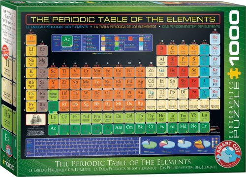 Puzzle znázorňující Periodickou neboli Mendělejevovu tabulku prvků.