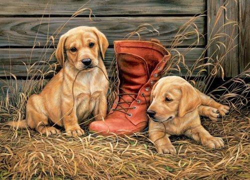 Kdo by nemiloval štěňátka Obrázek z dílny umělkyně Rosemary Millette působí realisticky až přímo živě. Vyobrazená štěňátka nabádají k pohlazení a nutí člověka k úsměvu. Puzzle je baleno v elegantní čtvercové krabičce a je vhodným dárkem nejen pro milovníky psů. Raznice puzzle EUROGRAPHICS nekopíruje standardní mřížku, rohy a hrany dílků nejsou vždy v jedné ose a dílky mají neobvyklý tvar. Obtížnost puzzle je tak vyšší než u klasické mřížkové raznice, kterou používají přední výrobci v Evropě. Rozměr složeného puzzle cca 67,63 x 48,89 cm