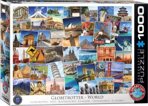 Puzzle EUROGRAPHICS z kolekce Globetrotter Collection (Světoběžník). Více než 40 nejznámějších míst celého světa s podrobným popisem na zadní straně krabičky (v angličtině).