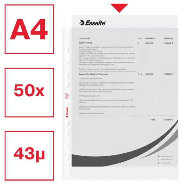 Závěsné obaly „U” v praktickém balení v kartonové krabičce; snadná manipulace s jednotlivými obaly; krabičku lze umístit svisle i vodorovně; nahoře otevřené; europerforace Materiál polypropylen; průhledný, …
