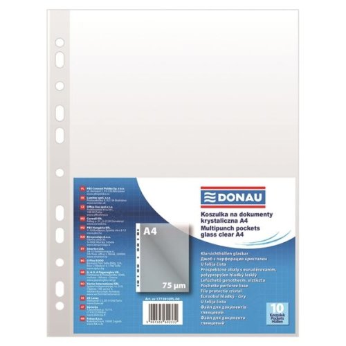 Vyrobeno z měkkého a hladkého polypropylenového filmu o tloušťce 75 mikronů Čiré, průhledné, hladké Otevřené shora Antistatické; vhodné pro dokumenty A4 Počet otvorů: 11 Rozměry: 228 x 305 mm 10 ks v …