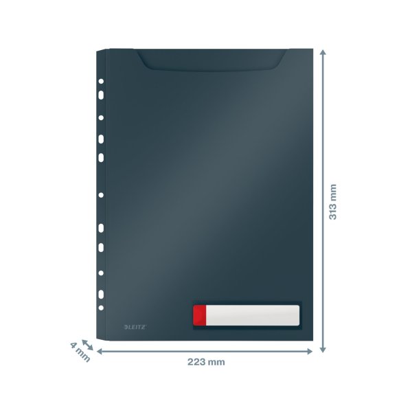 • Velký výřez na přední straně desek usnadňuje vkládání dokumentů a umožňuje viditelnost obsahu