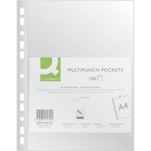 Prospektové závěsné obaly Q-Connect, určené pro dokumenty formátu A4 Typ U - otevřené shora Formát: A4 Europerforace Tloušťka materiálu: 50 mic Barva: čirá, matná povrchová úprava Balení obsahuje 100 …