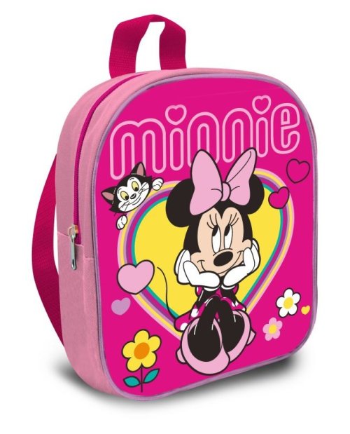 EUROSWAN Dětský batůžek Minnie hearts 29 cm Materiál: 100% Polyester Rozměr: 24x20x10 cm Malý dětský batůžek je lehký, z pevného a nepromokavého materiálu. Batůžek se skládá z jedné velké kapsy na zip, je opatřen nastavitelnými popruhy a ouškem na zavěšení. Na přední straně 3D obrázek