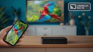 Evolveo Dcolor GD2 má integrovanou technologii Chromecast, takže už nemusíte řešit žádné kabely ani složité aplikace. Jedním kliknutím můžete „odeslat" video, film, fotky nebo třeba hudbu z mobilu či tabletu rovnou na obrazovku televize. Funguje to s oblíbenými aplikacemi jako je YouTube, Netflix, Spotify a stovkami dalších. Stačí mít zařízení ve stejné Wi-Fi síti a během vteřiny máte obsah ve velkém formátu.