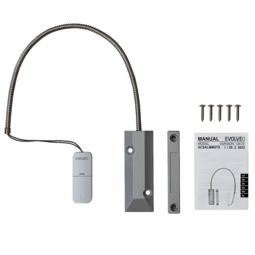 Technická specifikace Model: ACSALMMSTS Pracovní napětí: 12V (1× baterie 23A) Pohotovostní proud: ≤5uA Proud při aktivaci: ≤15mA Přenosová vzdálenost: <80m (bez překážek) Parametry bezdrátového připojení: 433MHz Provozní teplota: 0~55°C Rozměry Vysílač: 64 × 24 × 14 mm Rozměry Senzor: 105 × 37 × 9 × mm Rozměry Magnet: 105 × 15 × 15 mm Pancéřová hadice: 360 mm
