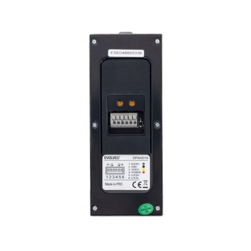 Parametry: Vnitřní monitor: Displej: 10,1" LCD dotykový displej Rozlišení: 1280 × 800 px Systém: Linux Paměť: 32GB Způsob připojení: 4 vodiče, max. průměr 0,75 mm² Funkce: Video komunikace, monitorování, ovládání dveřního zámku Způsob komunikace: Obousměrná hlasová komunikace Doba hovoru: 60 sekund Paměť: Podpora paměťových karet, WiFi připojení Maximální kapacita paměti: 128 GB Napájení: DC 18-24V Rozměry: 225x180x28,5 mm Spotřeba energie: Pohotovostní režim: 1,5 W Pracovní režim: 10 W Pracovní teplota: -10°C až +60°C