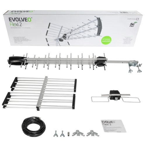 LTE/4G/5G filtr. Rozšiřitelná o zesilovač EVOLVEO AMP 1 s 5G filtrem. Zesilovač splňuje normu Radio Equipment Directive 2014/53EU (RED) a je tedy bezpečný pro zdraví člověka. Součástí balení je kabel 10m, redukce a úchyt pro upevnění antény.