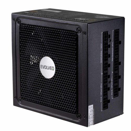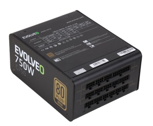 Zdroj EVOLVEO G750 je ideální volba do jakéhokoliv herního počítače. Vyjímá se především účinností s certifikací 80 PLUS GOLD zaručující účinnost až 90%. Zdroj je plně modulární, z toho důvodu je možné připojit jen nejnutnější kabely. Součástí je i tichý 140mm ventilátor. V kombinaci se semi-pasivním chlazení do 30% zatížení je zaručen tichý chod zdroje. Nedílnou součástí jsou i ochrany proti poškození komponent v PC a i zdroje samotného.