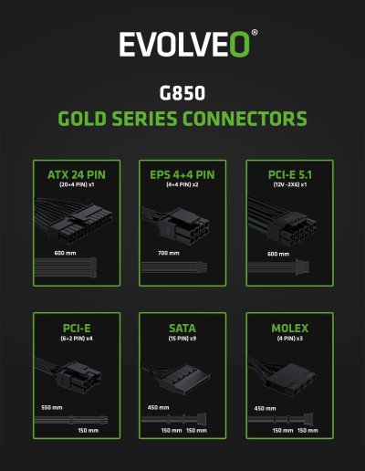 158 mm se zdroj EVOLVEO G850-WH vejde i do menších PC skříní či stylových towerů. Přitom si zachovává sílu