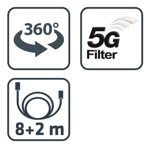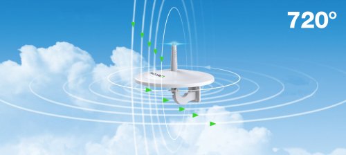 S anténou je možný příjem signálu 360° ve vertikálním směru a 360° v horizontálním směru. Díky tomu může anténa přijímat signál ze všech typů pozemních vysílačů vysílajících DVB-T2 signál.