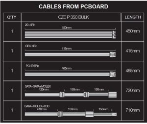 Specifikace • tichý 12cm větrák s regulací otáček • CE certifikace, norma RoHs. • kabeláž v délce 40 cm • 1x napájecí kabel pro MB 20+4pin • 1x napájecí kabel s 1x MOLEX konektorem,1xSATA a 1x fd3 • 1x napájecí kabel cpu 4pin • 1x napájecí kabel s 2x S-ATA a 1x MOLEX konektorem • 1x napájecí kabel VGA PCI-E 6pin