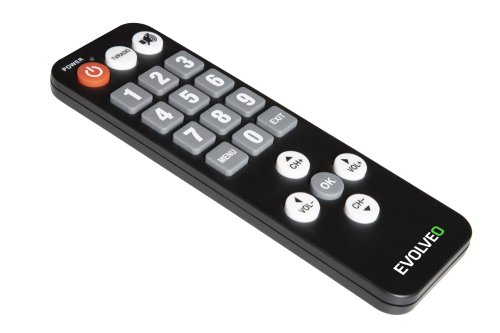 EVOLVEO seniorský dálkový ovladač pro Alpha T2 a Omega II Seniorský dálkový ovladač má velká písmena a je vybaven pouze základními funkcemi. Jeho používání je velmi jednoduché a díky velkým tlačítkům je vhodné hlavně pro seniory. Je určen pro přístroje Alpha T2 a Omega II a umožňuje současné používání s původním dálkovým ovladačem.