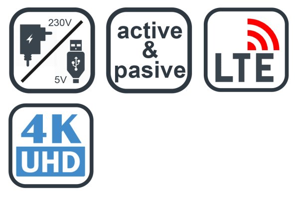 Elegantní pokojová anténa pro příjem digitální TV s možností otáčení o 360°. Zesilovač antény lze napájet díky USB kabelu dvěma způsoby. Napájení pomocí adaptéru 220V a dále napájení z USB konektoru. Druhý způsob ocení uživatel, který chce sledovat TV např. na NB pomocí USB tuneru. Možnost uchycení na TV nebo na zeď.