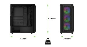 • Midi Tower • ATX, mATX, mITX • Mesh čelní panel s nacvakávacím mechanismem • Bočnice z temperovaného skla • 4x Ventilátory ARGB 120 mm • Dva prachové filtry • VGA max. 330 mm • CPU max. 170 mm • 2x …
