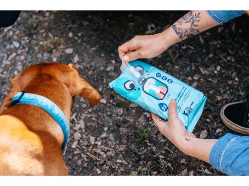 Přírodní vlhčené ubrousky, které jsou vhodné pro hygienu vašich domácích čtyřnohých přátel. Jsou vyrobeny ze 100 % bambusu a rychle a šetrně očistí tlapky či srst vašeho pejska. Obsahují 98,6 % vody, 1 % mandarinkového extraktu a velmi jemné konzervační látky, které zajistí, že ubrousky zůstanou i po otevření nekontaminovány. Ubrousky jsou čisté, bez obsahu alkoholu, bez vůní a plastů, jsou kompostovatelné a šetrné k životnímu prostředí.