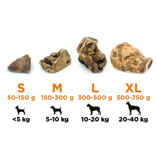 Žvýkací kořeny jsou 100% přírodní možností pro majitele aktivních žvýkačů. Tento kořen je vyroben v Itálii z na vzduchu sušených kořenů vřesu získaných sklizní, vařením a zpracováním stromové esence, pěstované ekologicky udržitelnými metodami. Kořen je skvělou alternativou pro psy, kteří rádi žvýkají hole či váš nábytek.