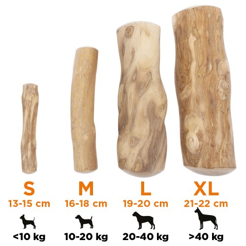 Z kávovníkového dřeva se oddělují jen jemná dřevěná vlákna, která pes bez problémů spolkne a stráví. Tato jemná dřevěná vlákna slouží jako zubní kartáček. Žvýkací tyčinky tedy pomáhají při přirozeném čištění psích zubů a zároveň posilují zubní svalstvo.