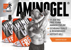 Aminogel je unikátní aminokyselinový produkt, který v jednom balení chutného gelu obsahuje velmi silnou dávku 11 030 mg výhradně volných aminokyselin. Gelová forma zajišťuje ideální stravitelnost a vstřebatelnost a pečlivě vyvážený poměr volných aminokyselin pro maximální anabolický, regenerační a antikatabolický účinek. Žádná pojiva jako v tabletách, žádné slisované proteiny, tento produkt obsahuje výhradně ty nejkvalitnější volné aminokyseliny ve formě gelu, a to ve čtyřech skvělých příchutích. Pro koho je Aminogel určený? Aminogel je díky svému unikátnímu obsahu 11 030 mg volných aminokyselin určený především pro všechny silové sportovce, kteří usilují o růst svalové hmoty a síly (anabolický účinek), a také pro všechny sportovce silově-vytrvalostních a vytrvalostních disciplín, kteří chtějí ochránit svalovou hmotu při tvrdých trénincích nebo při redukci podkožního tuku (antikatabolický účinek). Tento produkt preferují sportovci, kteří chtějí doplnit všechny volné aminokyseliny potřebné pro rychlou regeneraci v rychle vstřebatelné, chutné a kompaktní formě. Jaké jsou výhody gelové formy aminokyselin? Gelová forma aminokyselin zajišťuje rychlou a maximální stravitelnost a vstřebatelnost, což je pro anabolický a antikatabolický účinek aminokyselin zásadní. Žádná pojiva jako v aminokyselinových tabletách, žádný slisovaný proteinový prášek – pouze volné aminokyseliny ve velmi silné dávce 11 030 mg v balení. Gelová forma je v neposlední řadě také velmi praktická. Nosíte s sebou celý den tablety komplexních aminokyselin, BCAA a prášek glutaminu kvůli suplementaci přes den a okolo tréninku? Není právě pro Vás vhodnější kompaktní gelová forma produktu, která v jednom balení obsahuje všechny potřebné aminokyseliny? Sáček můžete mít celý den u sebe, brát si jej na trénink, na sportoviště, na cesty a dovolené, na závody a na zápasy. Nepotřebujete nosit žádná velká balení ani hledat zdroj pitné vody nebo něco odměřovat. Díky produktu Aminogel máte u sebe vždy přesně odměřenou porci všech volných aminokyselin ve skvěle vyváženém poměru. Doporučené dávkování: