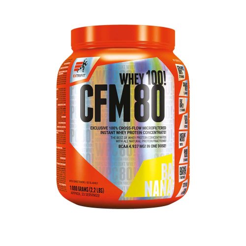 nejkvalitnější zdroj bílkovin – nativní CFM instantní syrovátkový koncentrát vyrobený v Evropské unii protein je zpracován nejšetrnější metodou za studena na keramických mikrofiltrech zachovány všechny důležité bílkovinné frakce (žádné ničení bílkoviny chemií nebo ionty) přidáno 7 silných trávicích enzymů pro dokonalé využití bílkovin a hladké strávení obsažených živin slazen kombinací ověřené sukralózy a steviol-glykosidů přírodního původu z rostliny stévie ovocné příchutě obsahují rozemleté kousíčky 100% ovoce pro ještě lepší chuť plná krémovitost a lahodná konzistence používá pouze a jen přírodní barviva, žádná syntetika 13 naprosto excelentních příchutí, vylepšené na samou hranici možného pro tento typ CFM proteinu 100% instantní – zcela dokonale rozpuštěn za několik sekund špičková stravitelnost a využitelnost bílkovin zcela bezprašný – jemně nadýchaná konzistence určen pro nárůst kvalitní svalové hmoty díky skvělým nutričním hodnotám vhodný také do diety dóza je zatavena v celoplošném sleevu až po víčko – máte jistotu, že právě Vy jste úplně první, kdo protein otevřel pod víčkem indukčně zatavená zátka pro zamezení vstupu vzduchu do produktu Obrovským benefitem je zachování všech bílkovinných frakcí (podívejte se ve složení níže na podrobný rozpis). Navíc jsme přidali komplex sedmi enzymů pro dokonalé strávení proteinu a zabudování bílkovin do svalové hmoty. Jedná se o enzymy papain, alfa-amyláza, bromelain, laktáza, celuláza, neutrální proteáza a lipáza. Kombinace sukralózy a sladidla přírodního původu z rostliny stévie vytváří dokonale vyváženou sladkou chuť! CFM Instant Whey 80 Vám nabízíme ve 13 vynikajících příchutích. V ovocných variantách je obsaženo pravé, sušené ovoce (tedy žádná chemie) a na chuti je to obrovsky znát! Troufáme si tvrdit, že protein CFM Instant Whey 80 chutná nejlépe ze všech. Chuť je plná, výrazná a nápoj nádherně krémový. Obsah proteinu je pro tento typ produktu nadstandardních 75 %! Kromě skvělého složení je tento výrobek oblíben díky snadné a bezproblémové přípravě – je výborně rozpustný, nepráší a netvoří hrudky. O použitém nativním CFM proteinu: CFM je přírodní, nechemický proces výroby syrovátkového proteinu nejvyšší kvality, filtrovaného na speciálním, technologicky vyspělém keramickém cross-flow filtru, který je schopen ve vysoké míře odfiltrovat všechny nežádoucí složky (jako je tuk, laktóza…) a izolovat čistou (panenskou) syrovátkovou bílkovinu se zachováním všech cenných mikrofrakcí, jako je beta-laktoglobulin, alfa-laktalbumin, sérový albumin, imunoglobulin, glykomakropeptidy a laktoferin. To vše bez použití chemikálií či rozpouštědel. CFM je nejšetrnější existující metoda výroby bílkovin, protože surovina není vystavena žádným znehodnocujícím postupům, např. vysokému tlaku, teplotě, iontům či hydroxidům. Pouze samovolně prochází svojí vlastní vahou přes keramické filtry. Díky tomu je finální syrovátkový protein intaktní = nedotčený ničím a nikým = tzv. panenský protein (virgin protein). Jeho struktura, složení bílkovin, vůně, barva a chuť je přirozená, ničím neovlivněná a nezměněná, zůstává v původní, tzv. nativní podobě.