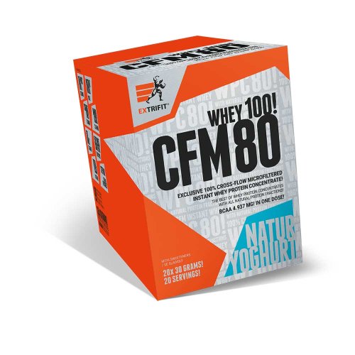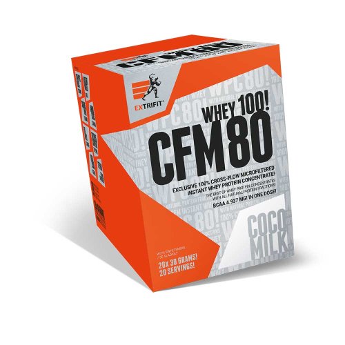 nejkvalitnější zdroj bílkovin – nativní CFM instantní syrovátkový koncentrát vyrobený v Evropské unii protein je zpracován nejšetrnější metodou za studena na keramických mikrofiltrech zachovány všechny důležité bílkovinné frakce (žádné ničení bílkoviny chemií nebo ionty) přidáno 7 silných trávicích enzymů pro dokonalé využití bílkovin a hladké strávení obsažených živin slazen kombinací ověřené sukralózy a steviol-glykosidů přírodního původu z rostliny stévie ovocné příchutě obsahují rozemleté kousíčky 100% ovoce pro ještě lepší chuť plná krémovitost a lahodná konzistence používá pouze a jen přírodní barviva, žádná syntetika 13 naprosto excelentních příchutí, vylepšené na samou hranici možného pro tento typ CFM proteinu 100% instantní – zcela dokonale rozpuštěn za několik sekund špičková stravitelnost a využitelnost bílkovin zcela bezprašný – jemně nadýchaná konzistence určen pro nárůst kvalitní svalové hmoty díky skvělým nutričním hodnotám vhodný také do diety dóza je zatavena v celoplošném sleevu až po víčko – máte jistotu, že právě Vy jste úplně první, kdo protein otevřel pod víčkem indukčně zatavená zátka pro zamezení vstupu vzduchu do produktu Obrovským benefitem je zachování všech bílkovinných frakcí (podívejte se ve složení níže na podrobný rozpis). Navíc jsme přidali komplex sedmi enzymů pro dokonalé strávení proteinu a zabudování bílkovin do svalové hmoty. Jedná se o enzymy papain, alfa-amyláza, bromelain, laktáza, celuláza, neutrální proteáza a lipáza. Kombinace sukralózy a sladidla přírodního původu z rostliny stévie vytváří dokonale vyváženou sladkou chuť! CFM Instant Whey 80 Vám nabízíme ve 13 vynikajících příchutích. V ovocných variantách je obsaženo pravé, sušené ovoce (tedy žádná chemie) a na chuti je to obrovsky znát! Troufáme si tvrdit, že protein CFM Instant Whey 80 chutná nejlépe ze všech. Chuť je plná, výrazná a nápoj nádherně krémový. Obsah proteinu je pro tento typ produktu nadstandardních 75 %! Kromě skvělého složení je tento výrobek oblíben díky snadné a bezproblémové přípravě – je výborně rozpustný, nepráší a netvoří hrudky. O použitém nativním CFM proteinu: CFM je přírodní, nechemický proces výroby syrovátkového proteinu nejvyšší kvality, filtrovaného na speciálním, technologicky vyspělém keramickém cross-flow filtru, který je schopen ve vysoké míře odfiltrovat všechny nežádoucí složky (jako je tuk, laktóza…) a izolovat čistou (panenskou) syrovátkovou bílkovinu se zachováním všech cenných mikrofrakcí, jako je beta-laktoglobulin, alfa-laktalbumin, sérový albumin, imunoglobulin, glykomakropeptidy a laktoferin. To vše bez použití chemikálií či rozpouštědel. CFM je nejšetrnější existující metoda výroby bílkovin, protože surovina není vystavena žádným znehodnocujícím postupům, např. vysokému tlaku, teplotě, iontům či hydroxidům. Pouze samovolně prochází svojí vlastní vahou přes keramické filtry. Díky tomu je finální syrovátkový protein intaktní = nedotčený ničím a nikým = tzv. panenský protein (virgin protein). Jeho struktura, složení bílkovin, vůně, barva a chuť je přirozená, ničím neovlivněná a nezměněná, zůstává v původní, tzv. nativní podobě.